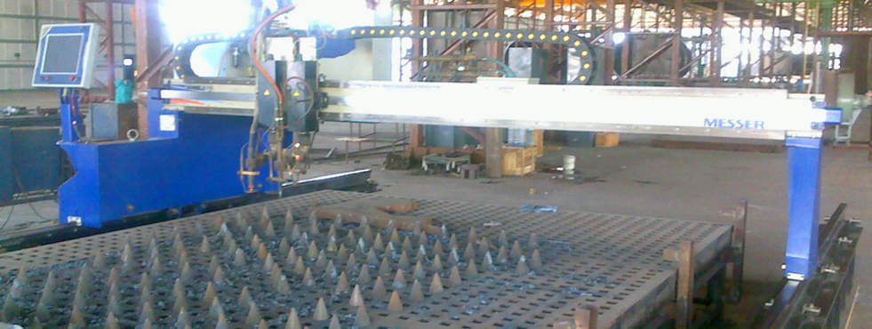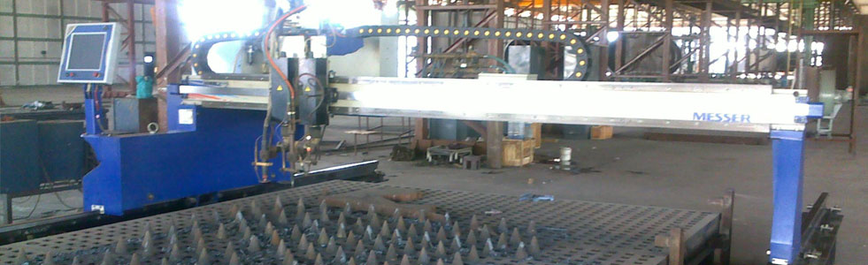 - CNC Plasma/Oxy acetylene plate cutting machine capable of handling plate sizes 3000mm X14,000mm