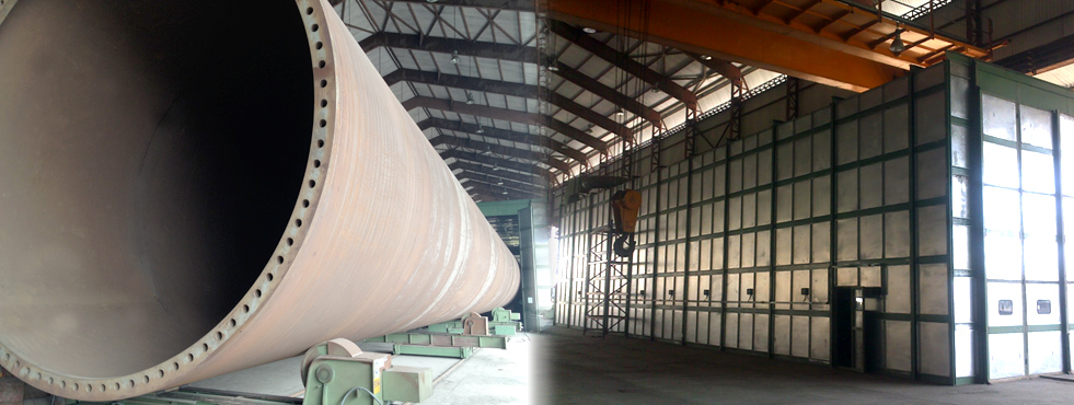 Our Shot Blasting Facilities & Painting Booth are capable of handling components with over all dimension of 5m X 5m X 30m having maximum weight of 75 tonnes. The paint facility provides controlled environment and ideal conditions to achieve the best quality of corrosion protection.